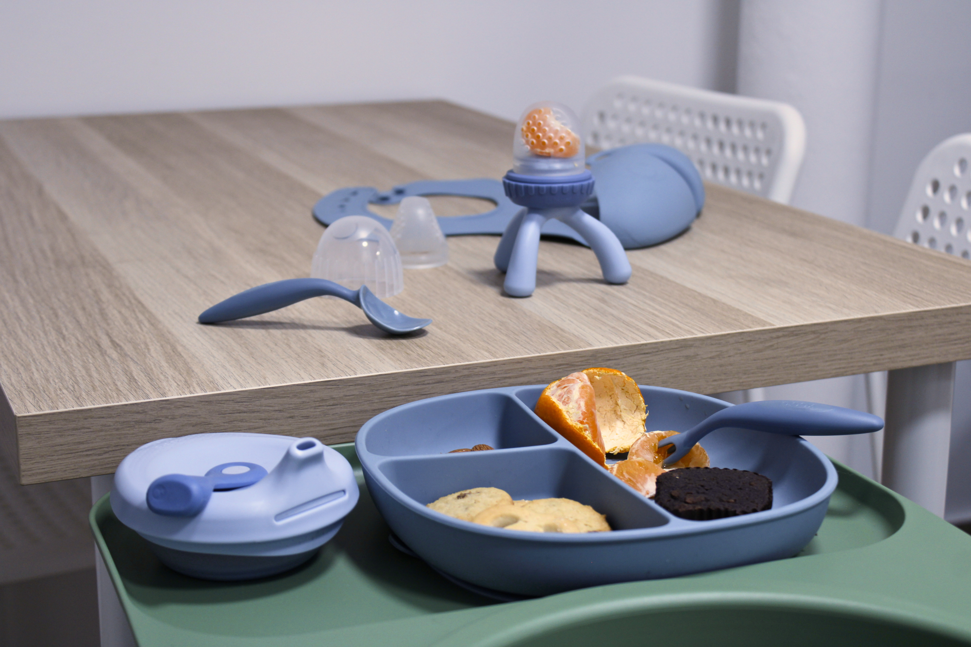 – Potpuni set koji pokriva prijelaz od kašica do čvrste hrane i voćnih zalogaja