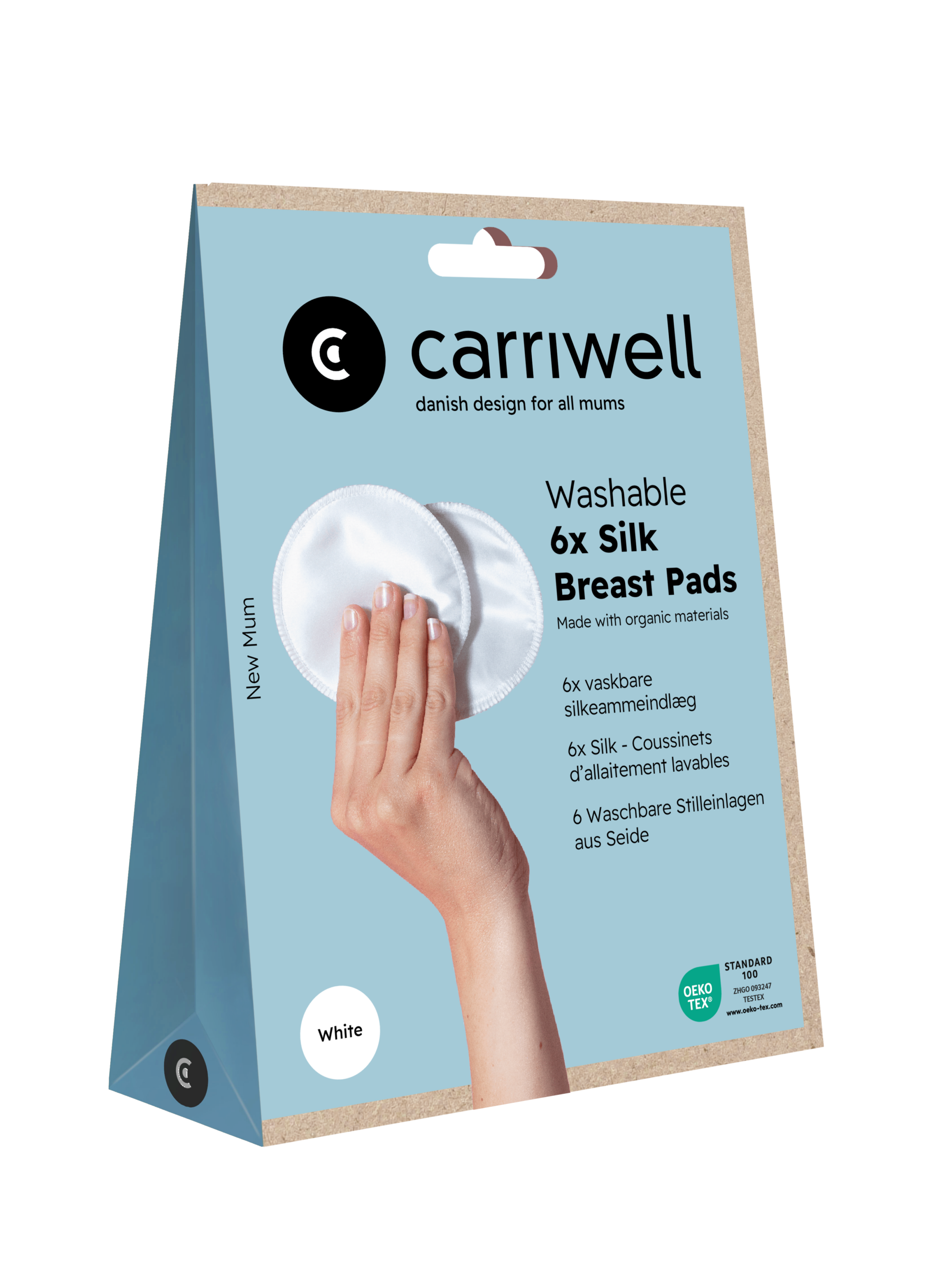 Carriwell Vložki za dojenje iz naravne svile, pralni – beli, 6 kosov v pakiranju