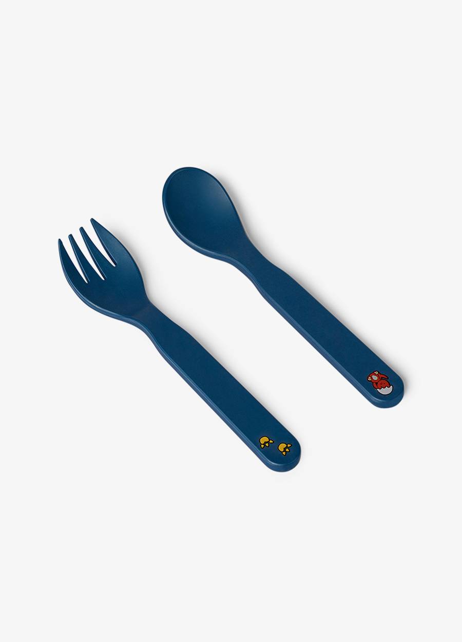 - Vključuje krožnik, skledo, kozarec in jedilni pribor (vilice in žlico) z ekskluzivnim potiskom